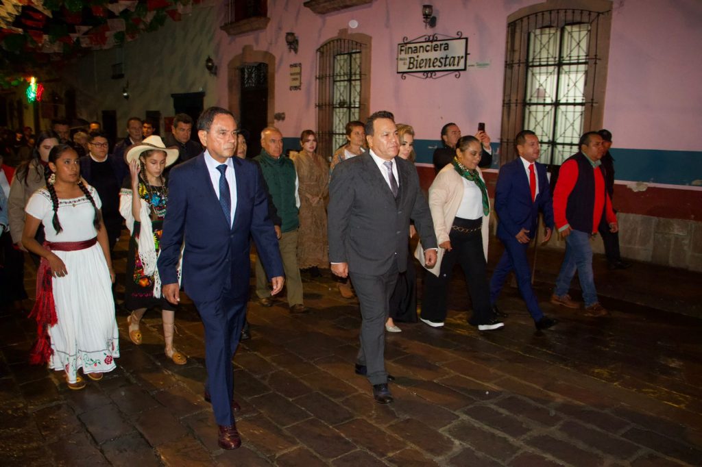 Se llevaron a cabo los honores a la bandera, y posteriormente, ya con el lábaro patrio en sus manos, el primer edil se dirigió al balcón ubicado a un costado del Jardín Principal, desde dónde se dirigió a los presentes, recordando lo hecho por el Padre de la Patria, aquella madrugada de septiembre: